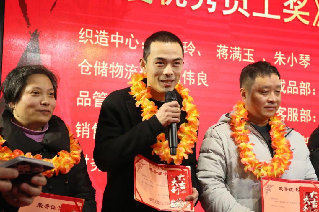 季度优秀员工奖:李艳玲、翁楚杰、蒋满玉、朱小琴(织造中心)、郭胜宾(复合车间)、褚伟良(仓储物流部)、