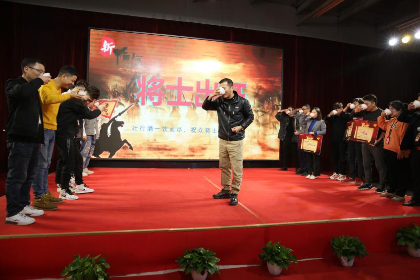 战士出征,还看今朝!在政策和新品的双重驱动下,营销中心的伙伴们更是众志成城,信心满满!在营销中心成品组支经理的带领下,全员签订了军令状并一起誓师。