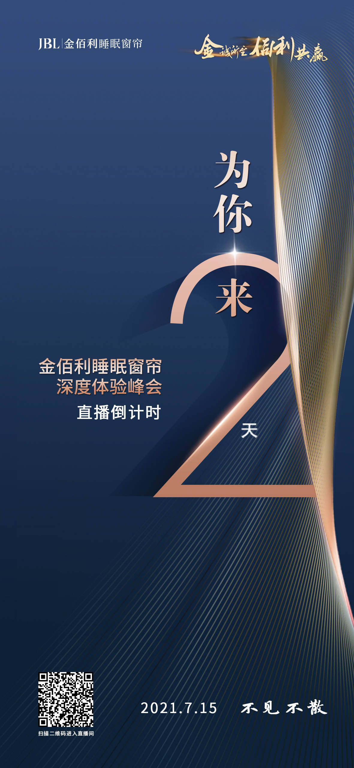 729│金佰利睡眠窗帘深度体验峰会即将盛大开启!机遇难得,不容错过! 这是一场梦想与财富的饕餮盛宴; 这是一场引爆窗帘行业的商业盛事。 在这个充满机遇与挑战的7月,JBL金佰利睡眠窗帘品牌深度体验峰会即将盛大开启,诚邀全国有志之士一起,颠覆行业新生,再造万亿商机,让创业者把握机遇,创造财富与成功事业! 专注,窗帘行业! 在许多同行选择拓宽经营范围,进入大热的软装市场,金佰利始终专注窗帘行业,目标始终是将金佰利打造成国民窗帘品牌。在企业的转型上,金佰利反其道而行,放弃更宽阔的市场,深耕窗帘细分领域。 作为 ...